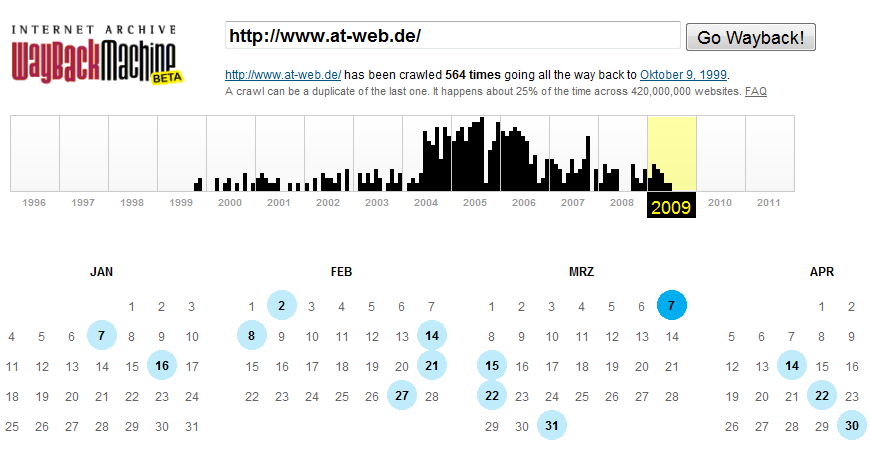 Der Spaziergang in die Webgeschichte funktioniert natürlich nur für Domains, welche den Crawlern der Internet Archive den Zugang nicht verweigern. Es sind aber eher wenige Websites, welche des Zugriff für das Internet Archiv verweigern.